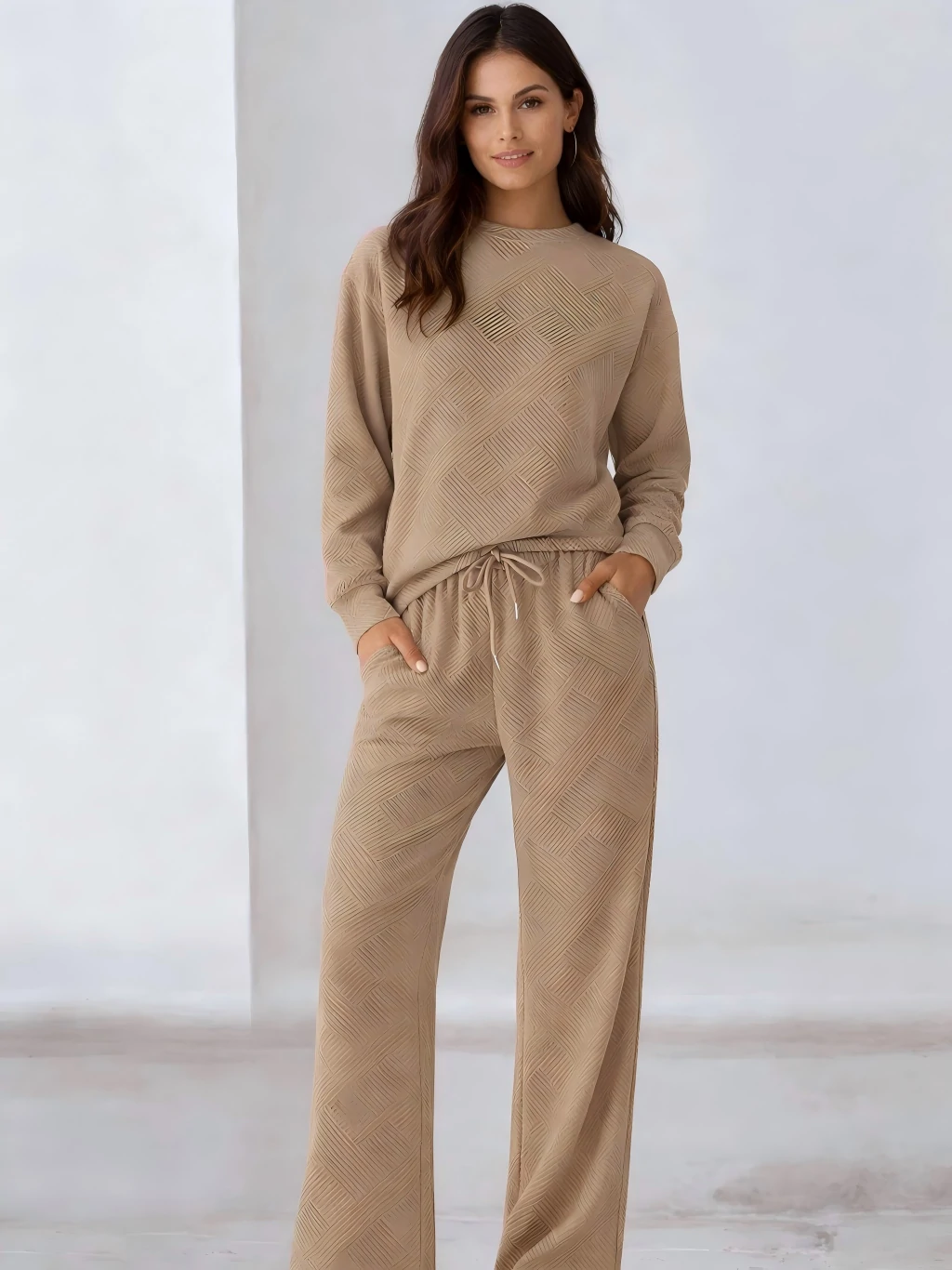 Two-piece loungewear sets with relaxed silhouettes, suitable for daily wear at home or casual outings. Designed for balance between comfort and structure.