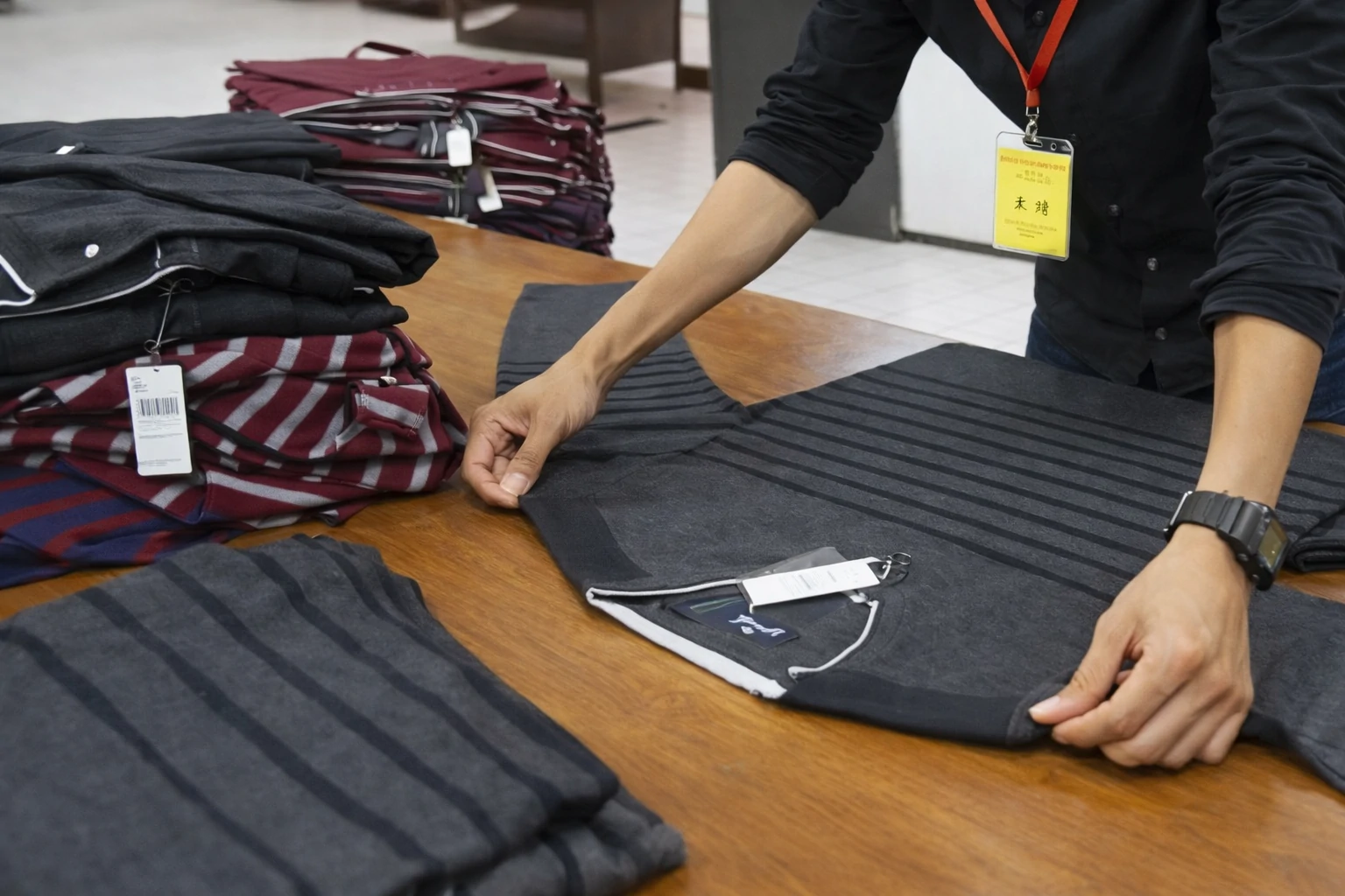 Finished garments are reviewed before packing to ensure they meet approved standards.